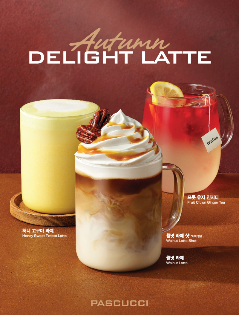 ‘월넛 라떼’는 고소한 호두 베이스 라떼 위에 휘핑크림과 피칸정과를 올려 견과류의 풍미와 식감을 풍부하게 살린 음료다. 파스쿠찌의 대표 커피 블렌드 ‘골든삭(Golden Sack)’ 에스프레소 샷을 추가해, 보다 깊은 맛의 ‘월넛 라떼 샷’으로도 즐길 수 있다. 꿀고구마와 우유가 어우러진 부드러운 ‘허니 고구마 라떼’, 유자&진저 베이스에 윈터프룻번치티를 더해 향긋하고 산뜻한 ‘프룻 유자 진저티’도 함께 출시된다.