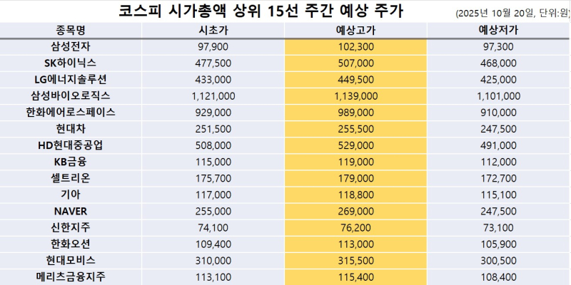 <빅터뉴스 주가 예측> 코스피 시가총액 상위 15선_10월 20일